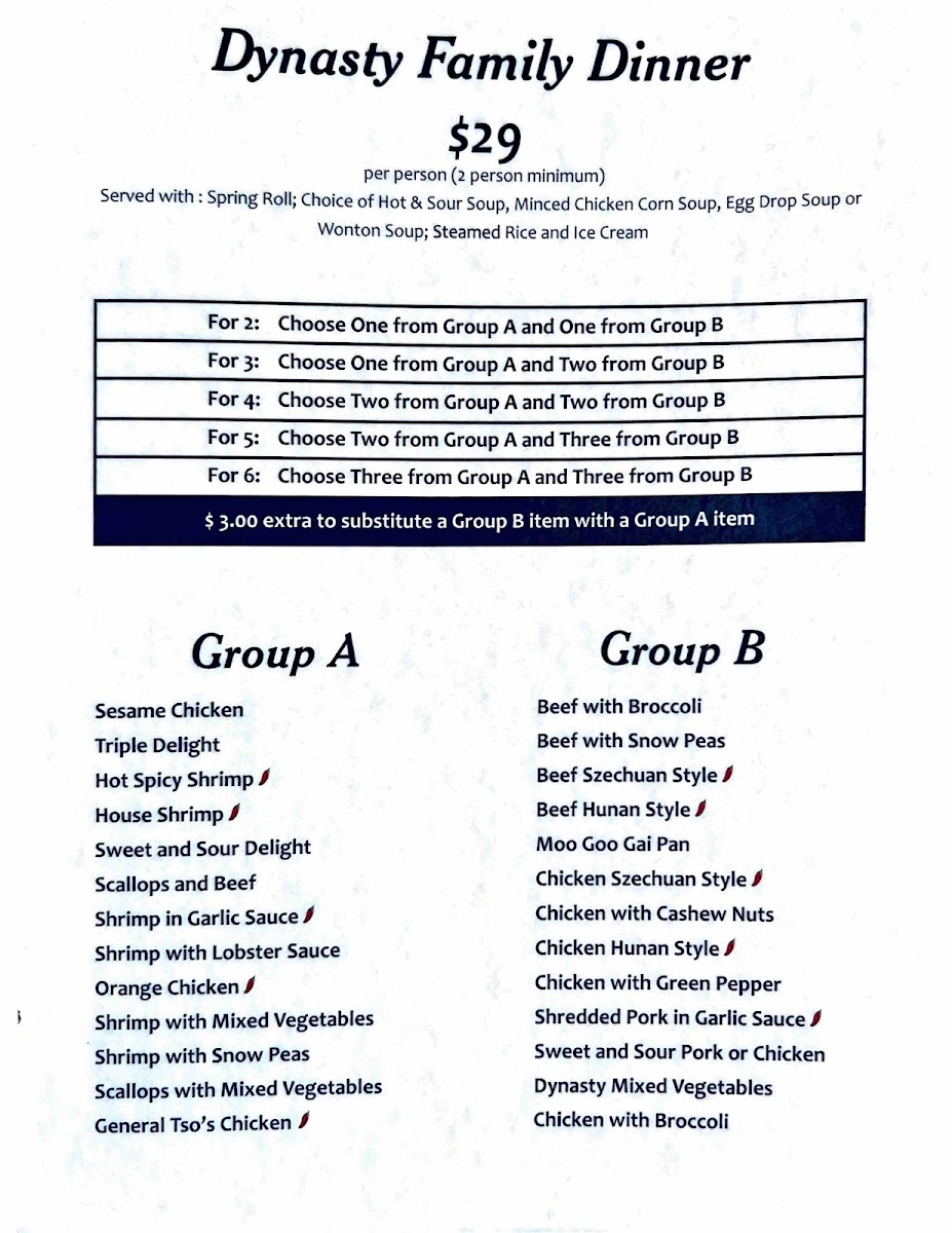 House of Dynasty Menu